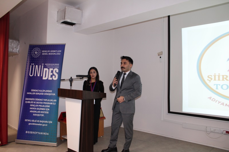 Cumhuriyet Savcısı Ahmet Tayyip Dikici, etkinliğin gerçekleşmesinde emeği geçen Adıyaman Üniversitesi Şiir Dinletisi Topluluğu'na plaket takdim etti.