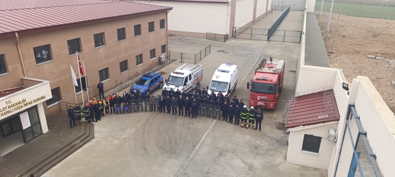 11 Aralık 2025 tarihinde düzenlenen tatbikat, senaryo gereği mahkum kabul bölümü önünde bulunan doğal gaz vanasından sızıntı olduğu, yangın meydana geldiği fark edilmiştir. Kurumda gerekli güvenlik önlemleri alınarak İtfaiye, Ambulans ve Afada haber verildi. Tatbikat sırasında Jandarma Bölük Komutanlığınca çevrede güvenlik önlemi aldı.